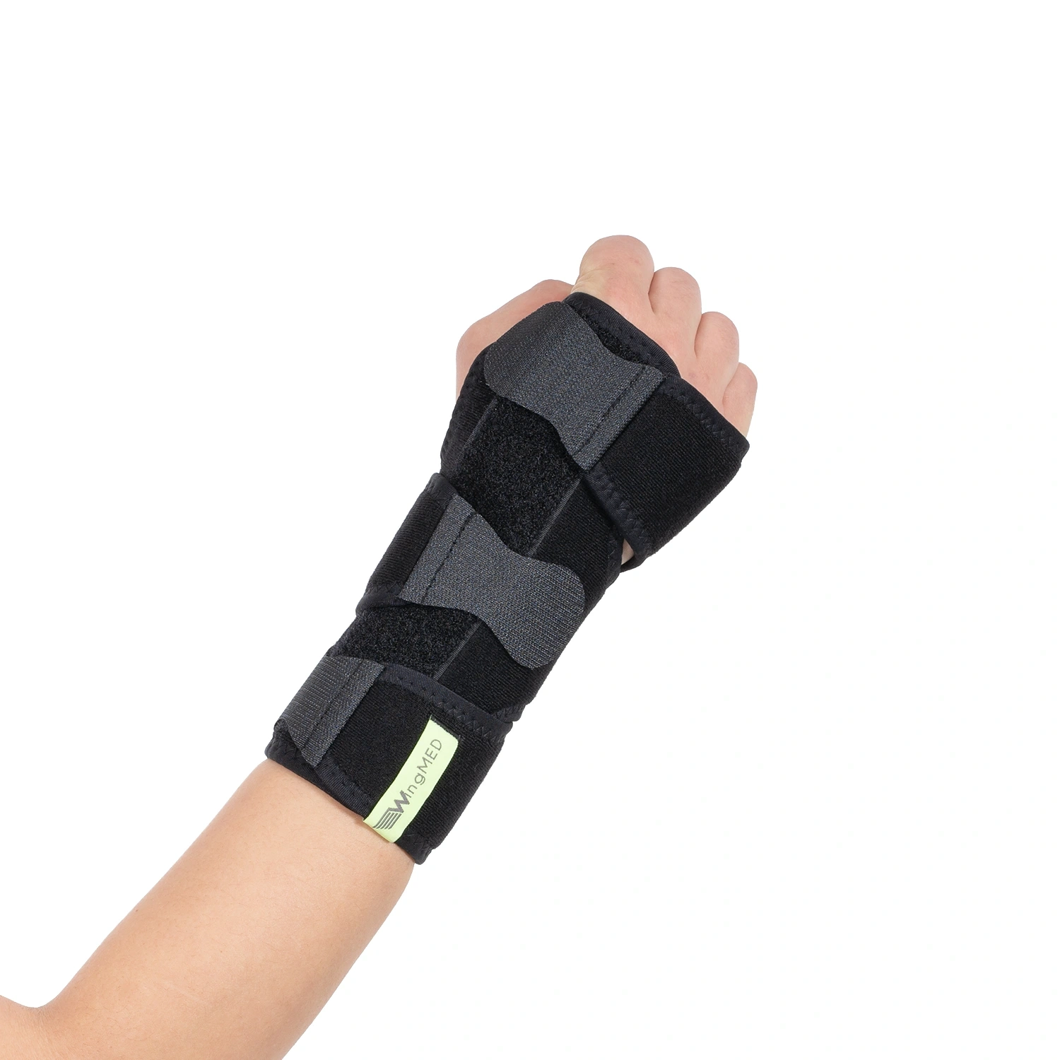 Bileğin nötral pozisyonda immobilizasyonunu sağlayan anatomik olarak şekillendirilmiş alüminyum desteği vardır. Bilek çevresinde stabilizasyonu arttıran bandajı mevcuttur. Standart beden olup, cırtlar ile kişisel ayar yapılabilir.